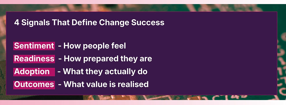 This shift is subtle, but powerful. Because once organisations start focusing on readiness, sentiment and behaviour, they stop reacting to failure and start shaping outcomes earlier.