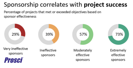 Research consistently demonstrates a strong correlation between sponsorship effectiveness and project success. Projects with highly engaged sponsors achieve significantly higher success rates, while those with weak or inconsistent sponsorship often struggle to realise intended benefits.