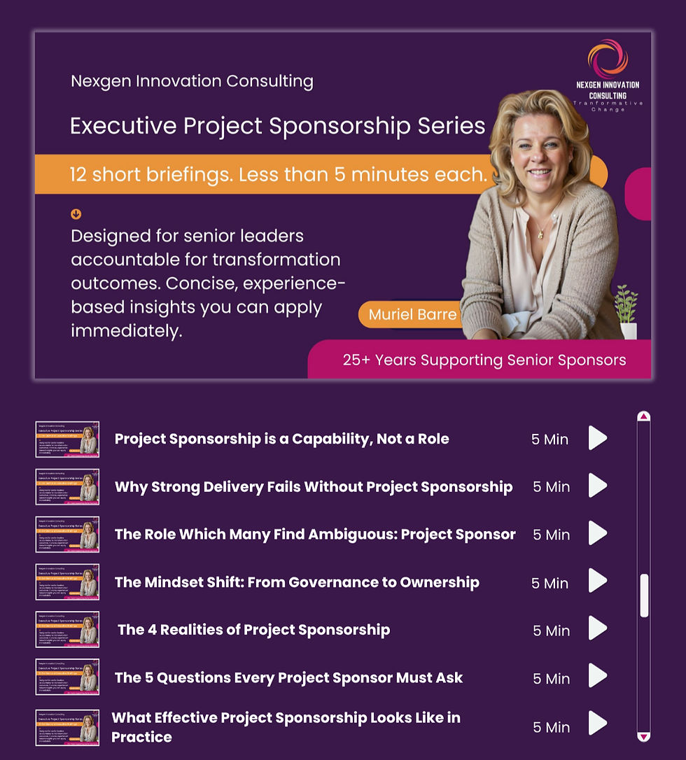 This executive briefing series provides concise, high-impact insights tailored for senior leaders. Designed for busy executives, each session offers practical guidance to strengthen sponsorship capability and leadership effectiveness.